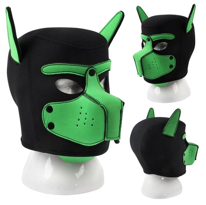 Le masque Puppy Dog On est un accessoire composé d’une forme de tête de chien avec les oreilles flexibles et le museau amovible.Couleur noire et le vert en contraste. Hauteur de 26cm.Tour de tête d’environ 55cm restant souple. Aspect tissu à l’extérieur et néoprène à l’intérieur
