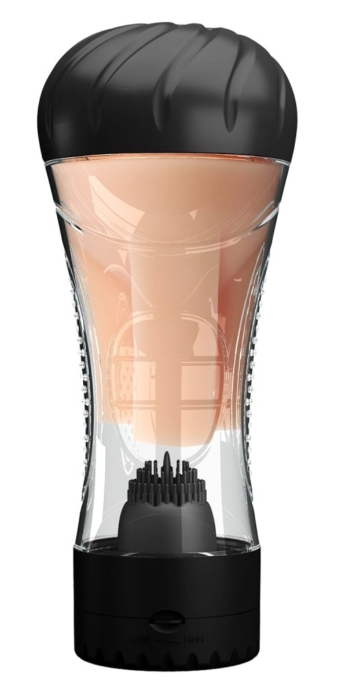 Masturbateur avec un intérieur texturé, une entrée vulve et une petite langue vibrante au fond.Insertion sur 15 x 4.5 cm. Gaine amovible en TPE.Coque rigide Nécessite 3 piles AAA (non fournies).