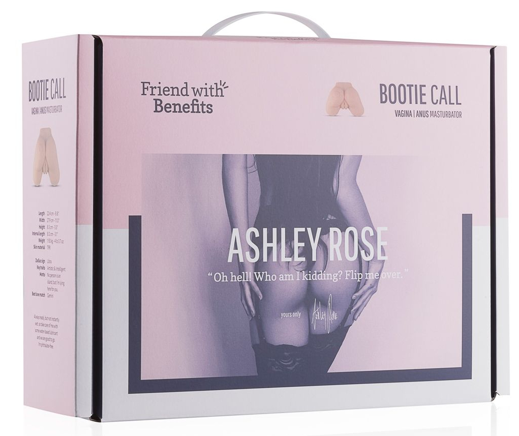 Le Masturbateur Réaliste ASHLEY ROSE vous proposera un fessier tatoué d’une rose, d’une vulve et d’une entrée anus, en position couchée sur le ventre.  Fesses rebondies. Longueur de 23 cm, largeur maximale de 25 cm et hauteur de 9 cm.  Poids de 1.910 kg Shorty non fourni En TPR
