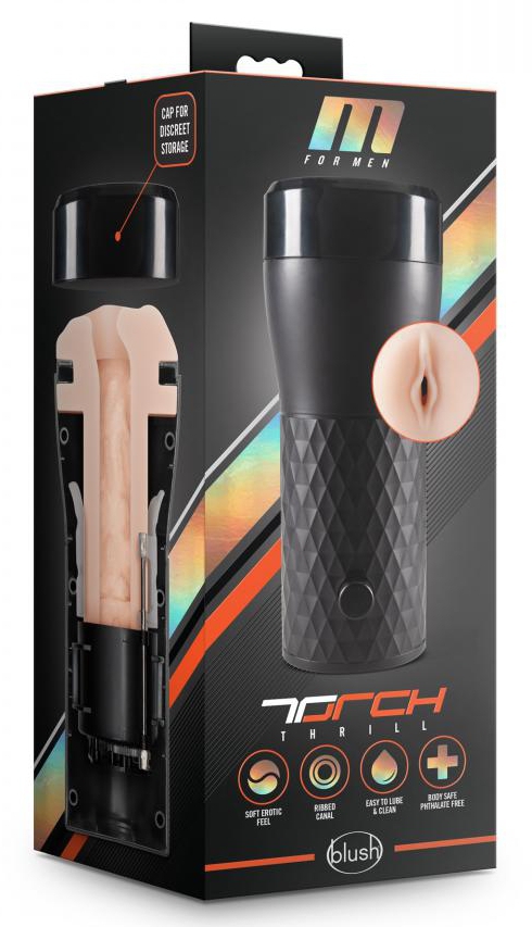 Augmentez le plaisir de vos moments solo avec le masturbateur réaliste Torch Thrill. Il comprend : un canal interne texturé pour des sensations incroyables. Il mesure environ 14.6cm de longueur insérable son entrée vulve réaliste une texture douce et souple imitant la peau, dans un étui rigide et un bouton réglant l’étroitesse du canal pour jouer sur les sensations !
