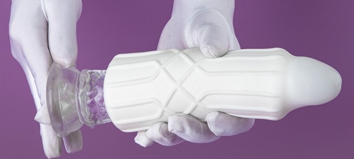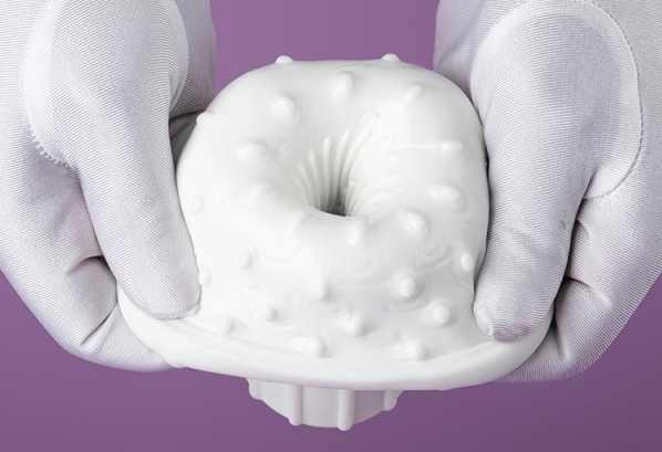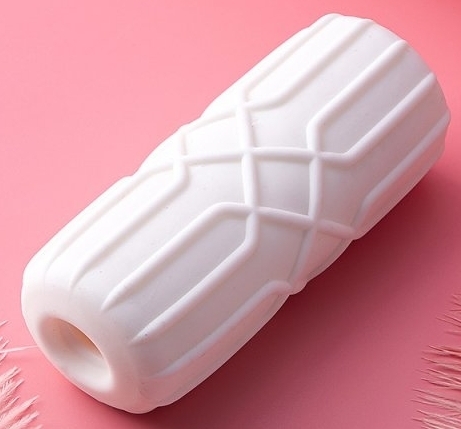 Masturbateur souple, sans coque, avec un intérieur texturé spécifique. D’une longueur insérable de 12 cm et d’un diamètre intérieur de 2 cm. D’une largeur de 3.5 cm, en TPE extensible blanc