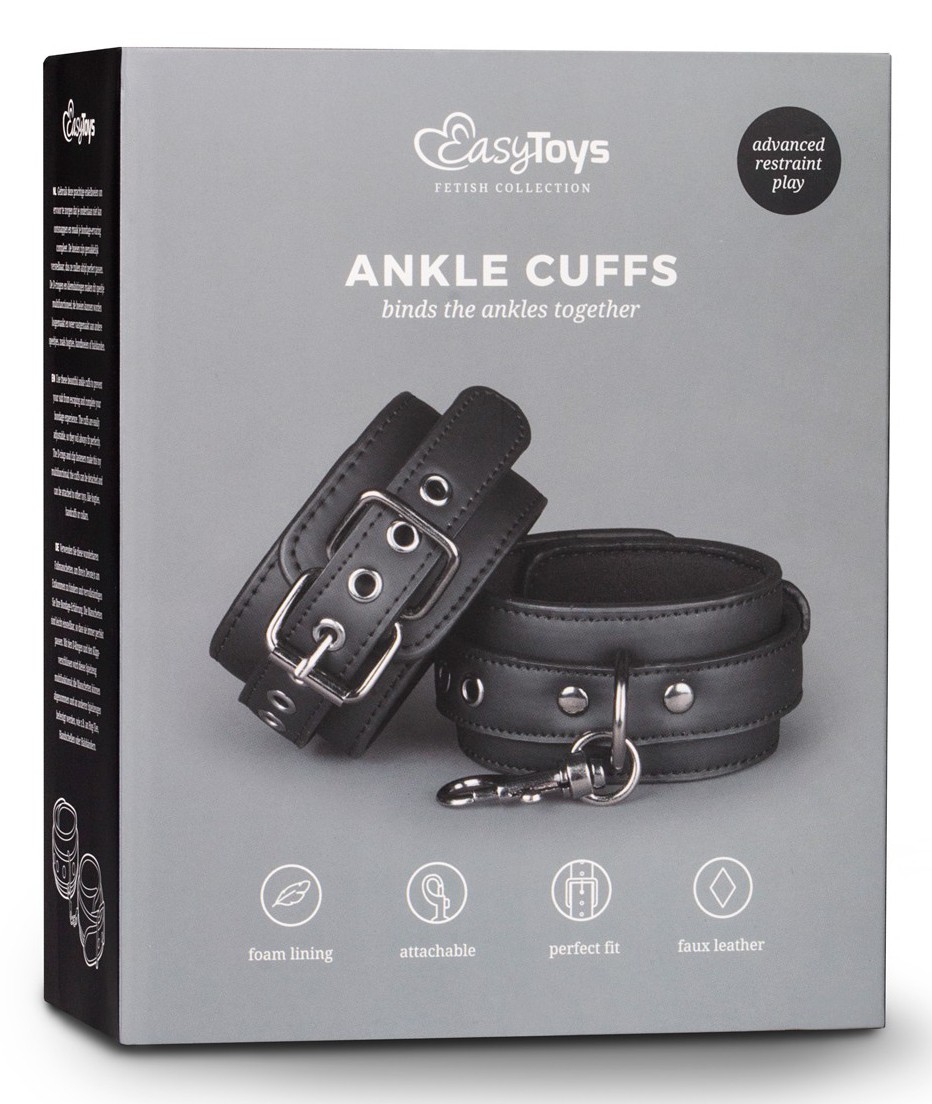 Ces menottes de chevilles de la marque EasyToys sont idéales pour les moments de jeux coquins et pour la soumission.Elles permettent de lier les deux chevilles et de renforcer le plaisir.Elles sont fabriquées avec une largeur de 5.3cm. La longueur est de 13 à 30cm, ce qui permet un ajustement facile pour toutes les tailles de cheville. Elles sont fabriquées en matière simili (polyuréthane)
