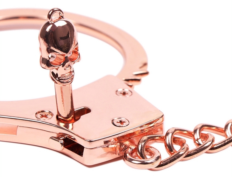 Profitez de ces menottes en métal Rackham et de leur design original ! D’une couleur cuivre et fournies avec des clés en forme de crâne, elles apporteront leur originalité lors de vos jeux de soumission-domination. Faciles d’utilisation, elles sont équipées d’une sécurité permettant un déverrouillage sans clé en cas d’urgence. Pour des moments BDSM très excitants !