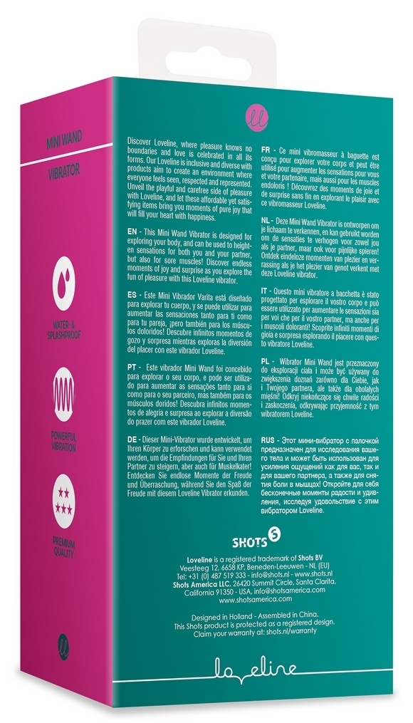 Mini-wand avec 7 modes de vibrations L’extrémité de sa tête mesure 2.5 cm Sa longueur totale est de 11 cm Il se recharge grâce à son câble USB. Il est entièrement en silicone, ce qui le rend étanche.