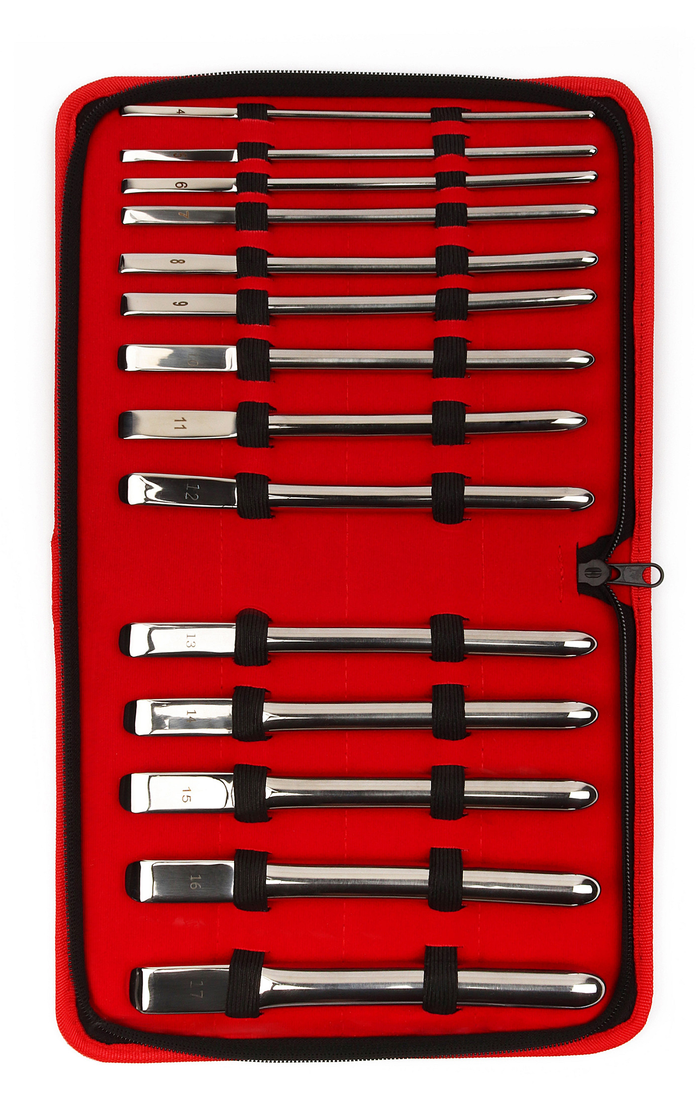 Pack de 14 tiges avec une longueur insérable de 14 cm.Les diamètres vont de 4 mm à 17 mm pour explorer à son rythme la pratique urétrale.La surface est lisse. L’extrémité est plate pour une prise en main hygiénique. En acier inox.