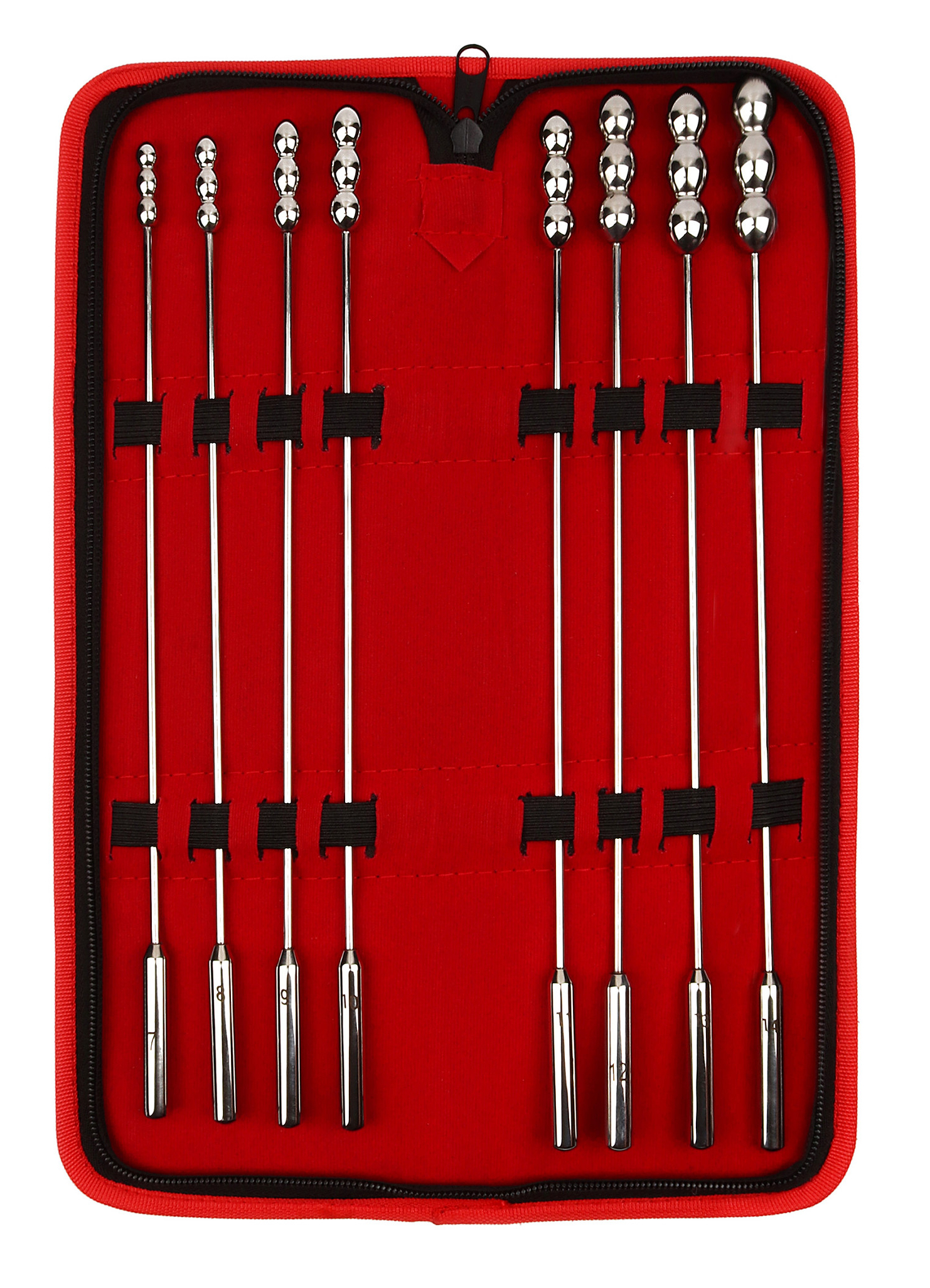 Tiges en acier inox avec une longueur insérable de 23 cm et à la forme droite. L’extrémité comporte trois sortes de boules pour une stimulation plus intense.Les diamètres vont de 7 à 14 mm. Longueur des extrémités de 2.5 à 5 cm.