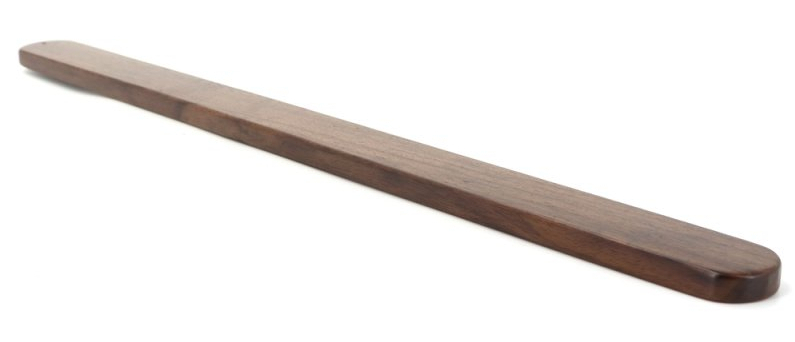 Paddle en bois droit en forme de règle.Longueur de 40 cm, largeur de 3 cm et épaisseur de 1 cm. En noyer marron