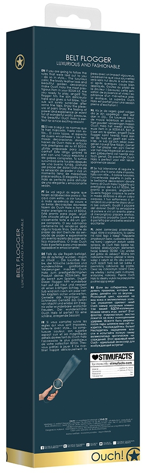 Ce paddle Flog Halo est idéal pour rendre le moments de soumission encore plus intenses. Il se compose d’une longueur de 40cm avec une largeur de 7cm.Il caresse ou frappe les fesses ! Avec un bel anneau en métal doré. Fabriqué en simili (polyuréthane)