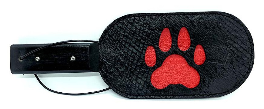 Cet accessoire est un paddle de 21cm de long et de 12cm de large réalisé en cuir avec une patte de chien à l’intérieur. Elle est conçue en creux et vient donc marquer la peau.Idéal pour les moments de soumission