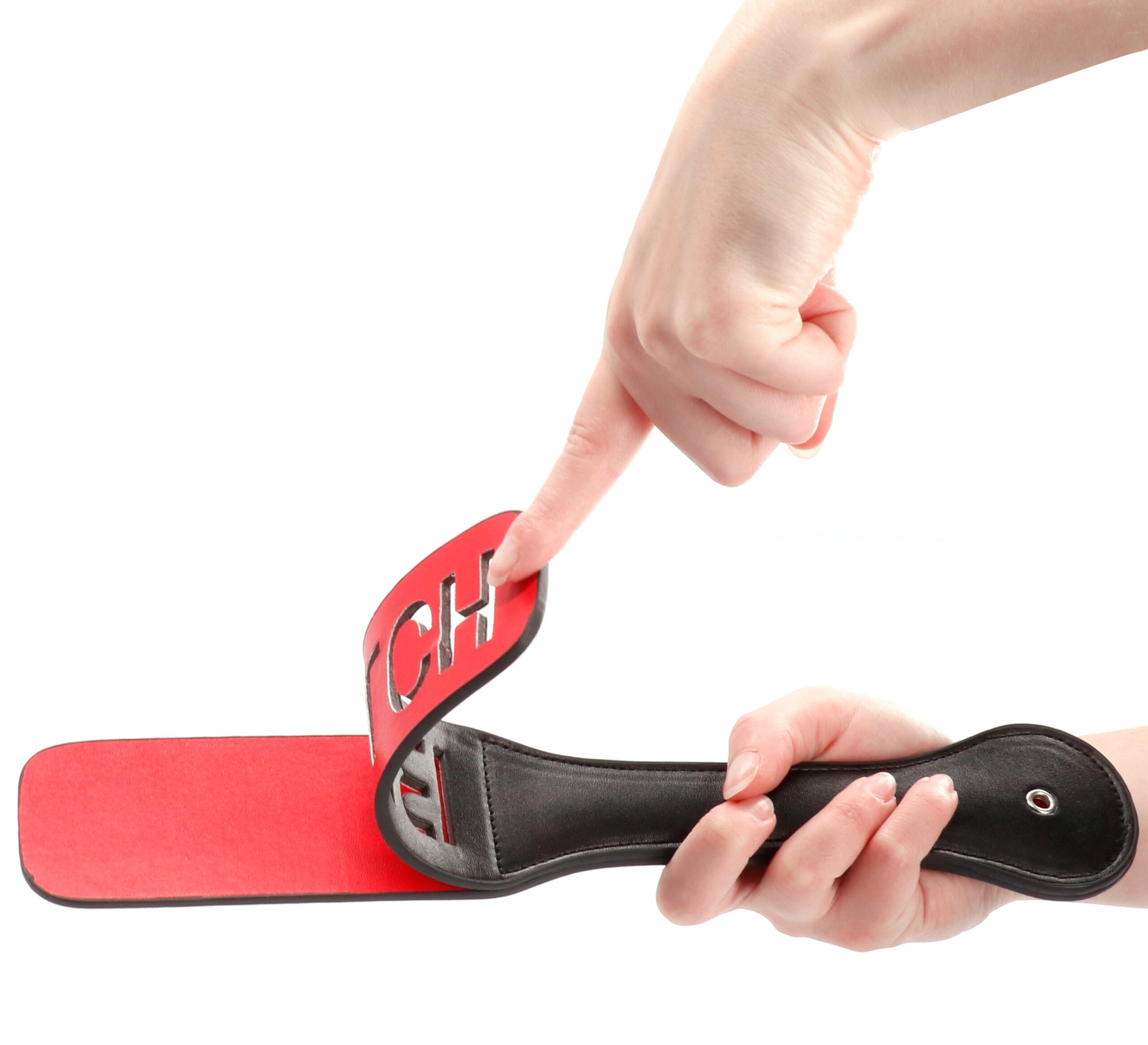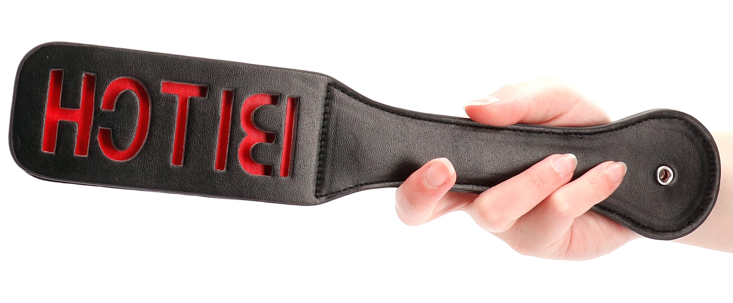 Le paddle Bitch est un accessoire conçu avec une longueur de 32 cm.Il a deux bandes qui claquent et apportent de l’intensité. La largeur est de 5.5 cm. En simili