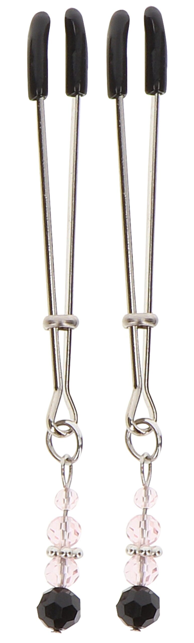 Ces pince-tétons en métal Tweezers Beads sont idéales pour stimuler les tétons et apporter des sensations intenses pendant les moments coquins. Avec des bijoux suspendus. Les extrémités sont protégées (revêtement PVC)