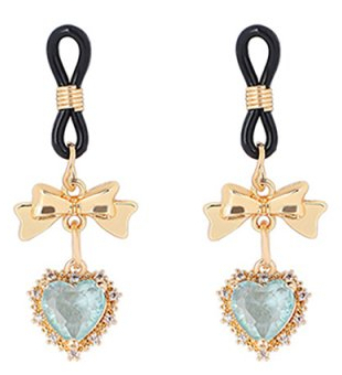 Pinces à tétons ajustables avec un petit noeud et un coeur bleu entouré de strass. Ensemble en métal doré