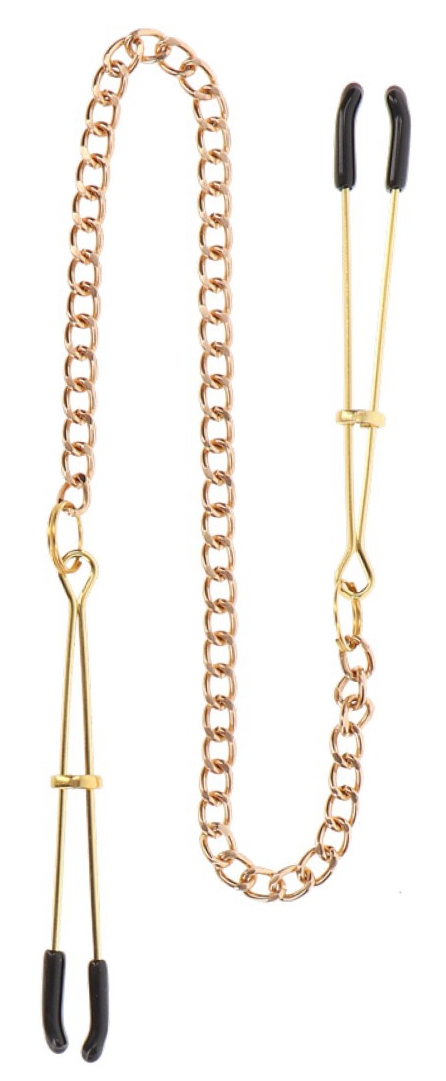 Ces pince-tétons Tweezers sont ici dans leur version dorée. Elles pincent les tétons et permettent d’apporter des sensations excitantes. Avec une chaîne en métal de 28cm.Les extrémités sont protégées (revêtement PVC)