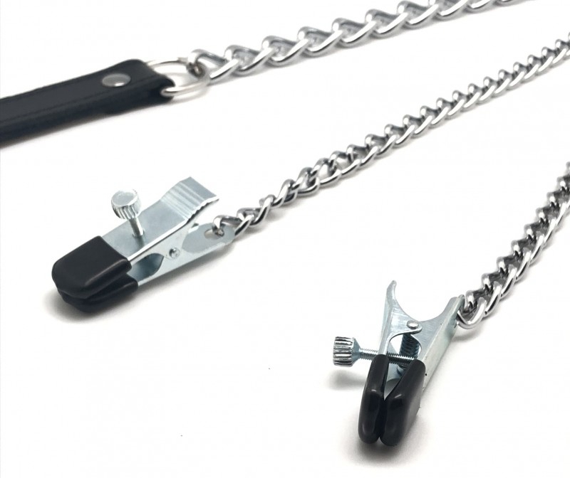 Pinces à seins + laisseLongueur totale de la chaine : 55cmCuir de haute qualitéTannage végétal Fabriqué en Europe