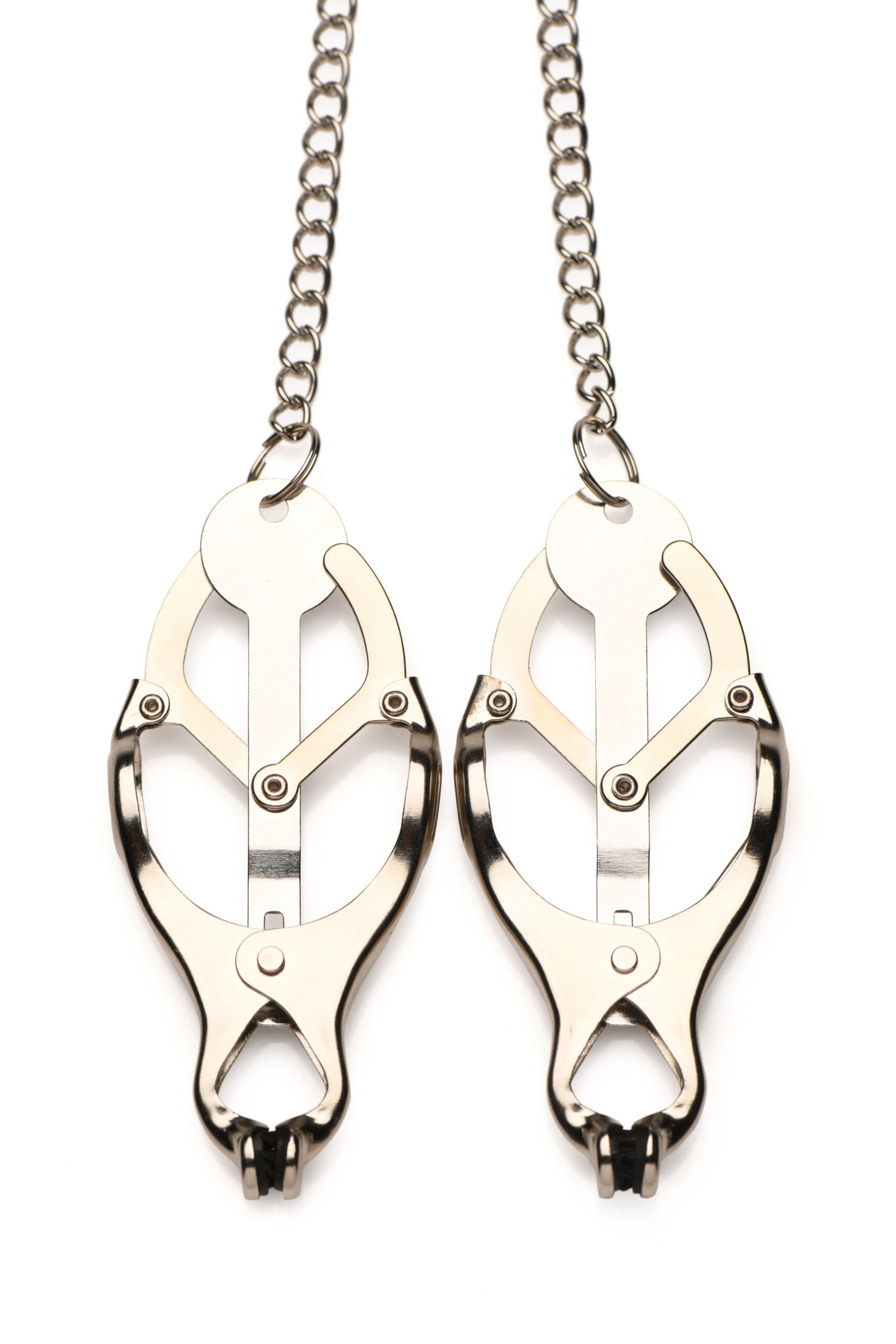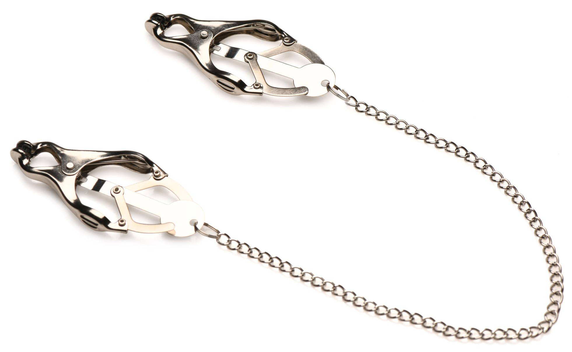 Pinces en métal avec des embouts texturés en caoutchouc. Embout avec des picots.Chaînes de 36 cm. Utilisation facile.