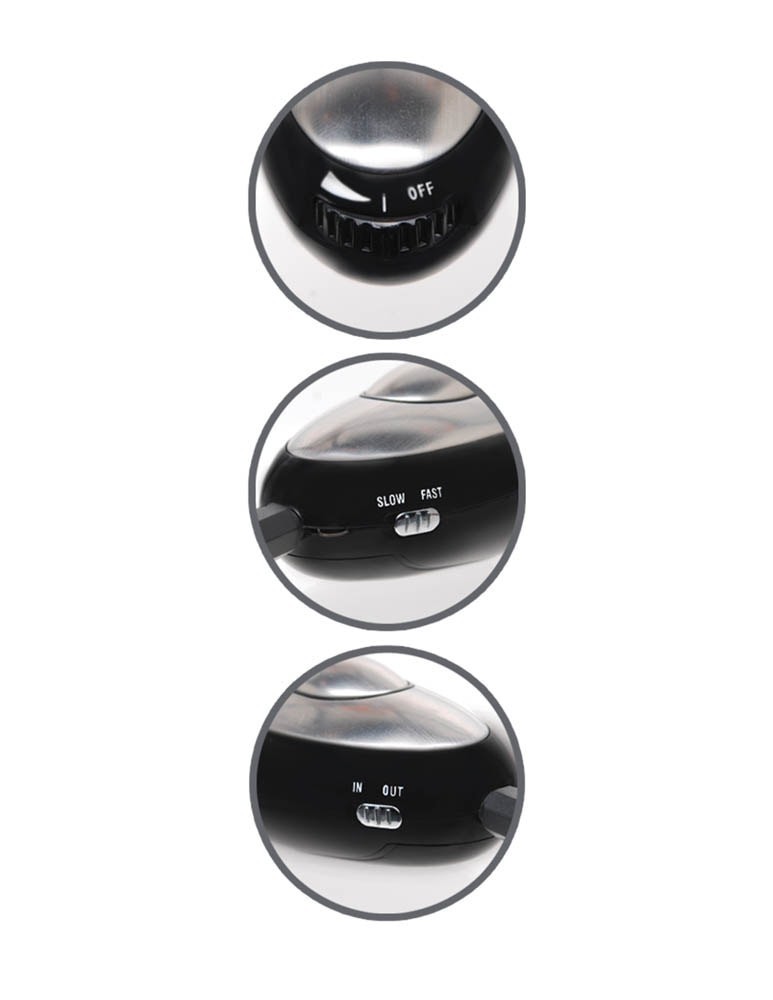 L’appareil fonctionne avec une pile CR2032 – 3V. Mode d’emploi: 1- Placer la pile dans le contrôleur 2- Mettre le contrôleur sur la position IN avant de le mettre en route par la molette On/Off. Allumez-le doucement pour vérifier que le courant fonctionne bien. Vous ressentez les impulsions dans la main 3- Choisissez la vitess d’impulsion avec les boutons SLOW (lent) et FAST (rapide) 4- Mettre les pinces sur les tétons et passez en mode OUT (le courant ira dans les pinces) Précautions d’emploi: Si vous ressentez de la gêne pendant l’usage, arrêtez de l’utiliser Ne pas mettre le contrôleur ni les pinces dans la bouche Ne pas utiliser en cas de troubles cardiaques, d’épilepsie ou de troubles neurologiques Ne pas utiliser en cas de pacemaker Interdit aux femmes enceintes Ne pas utiliser en conduisant Ne pas mettre en contact avec du métal ou piercing.