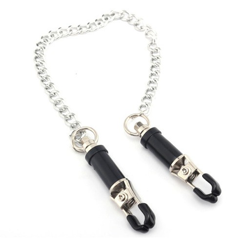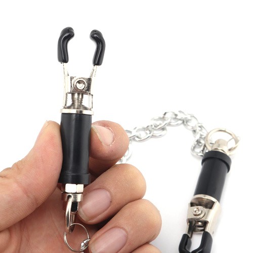 Ces pinces tétons ont une forme particulière qui rappelle les cartouches.Elles permettent de stimuler le téton et de serrer à la convenance. La chaîne en métal mesure 30cm, idéal pour relier les deux tétons.