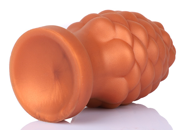 Forme de pomme de pin avec la surface texturée de la même façon.Longueur insérable de 7.5 cm.Largeur maximale de 4 cm.En silicone.