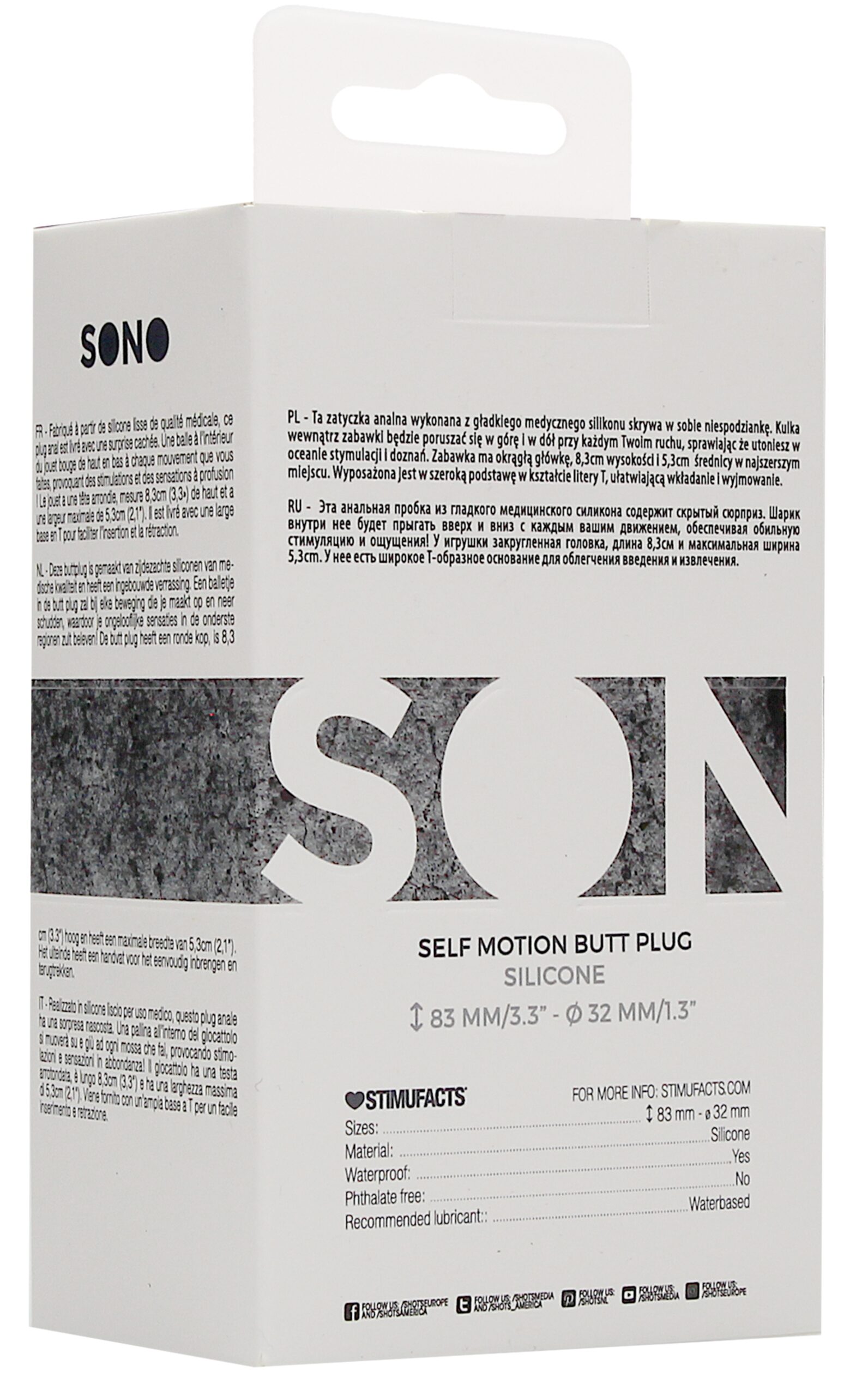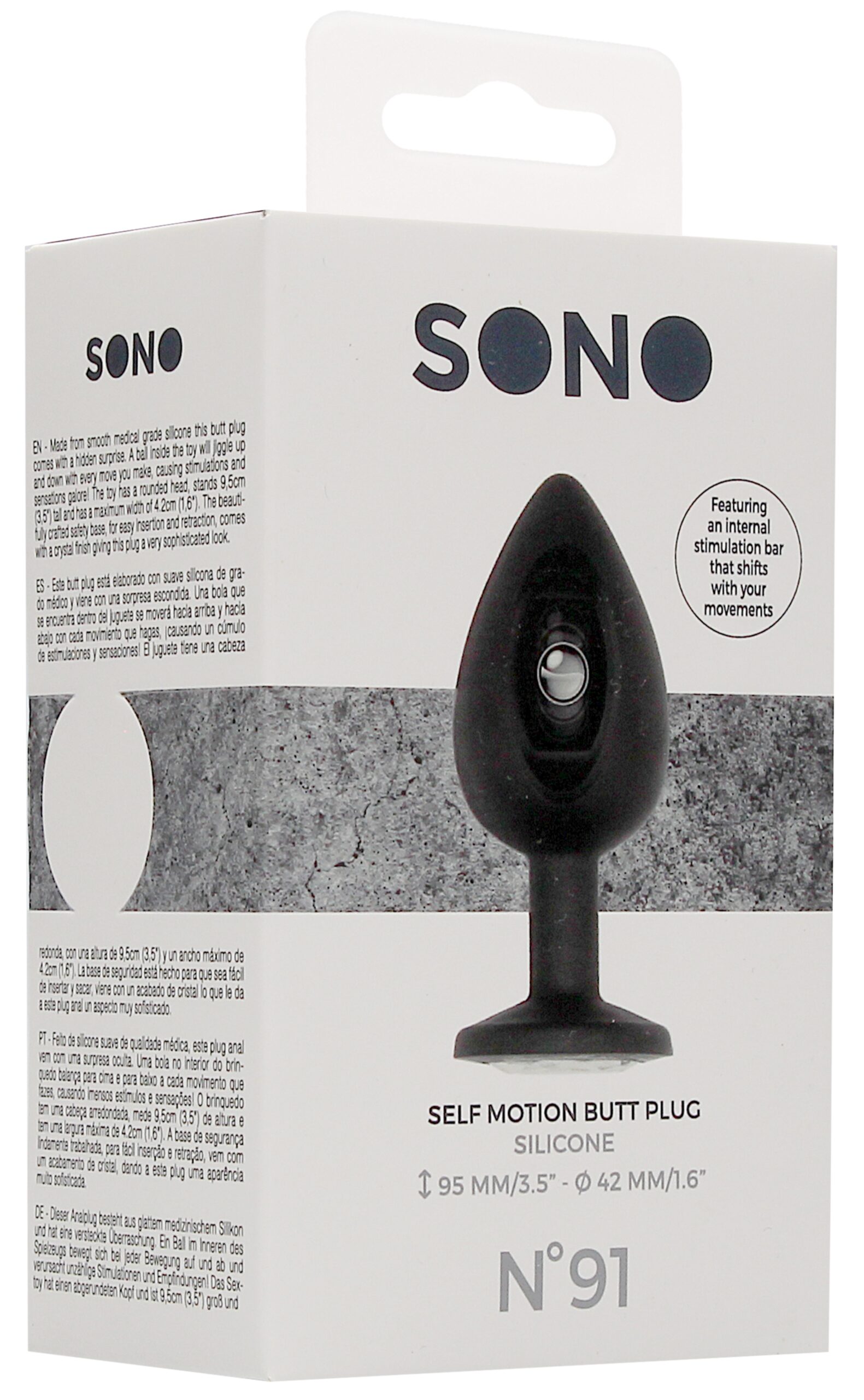 Ce plug anal en silicone SELF MOTION est proposé sur le sex shop gay par la marque Sono. Il s’agit d’un sextoy anal conçu pour apporter un maximum de sensations.Il se compose de : une longueur insérable de 8cm avec une largeur de 4cm au maximum une bille intérieure permettant de donner des sortes de vibrations un bijou strass brillant sur la base.