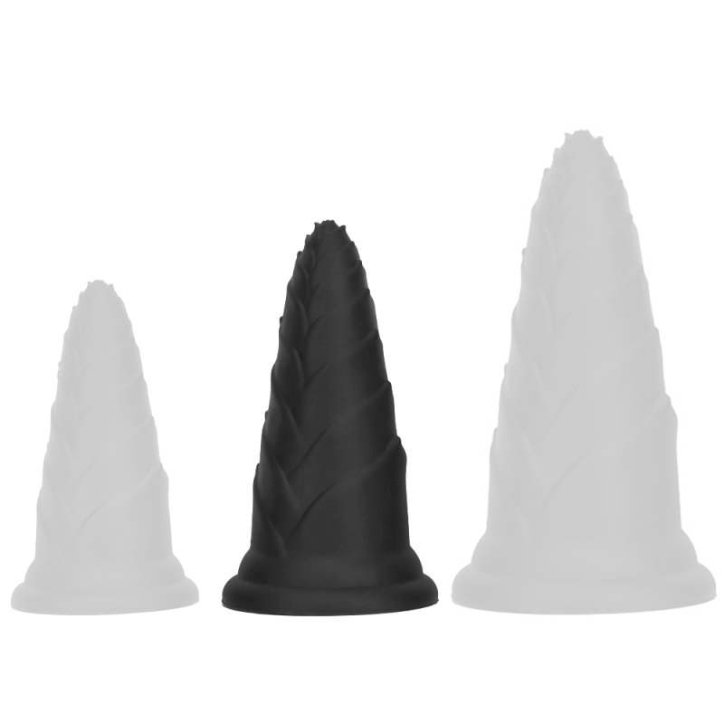 Plug au relief progressif et à la forme conique.Longueur insérable de 15 cm et largeur de 4 à 7 cm.En silicone, avec base ventouse.