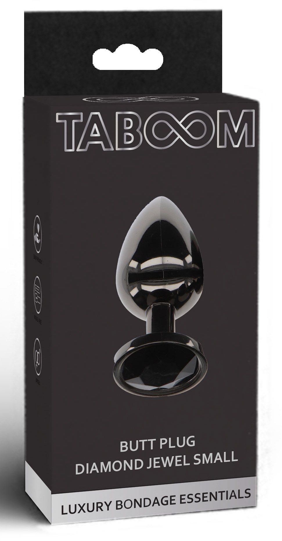 Le plug bijou Diamond Jewel S est conçu avec une longueur insérable de 6cm et une largeur de 2.7cm.La surface est lisse et le bijou est rond et noir. En aluminium