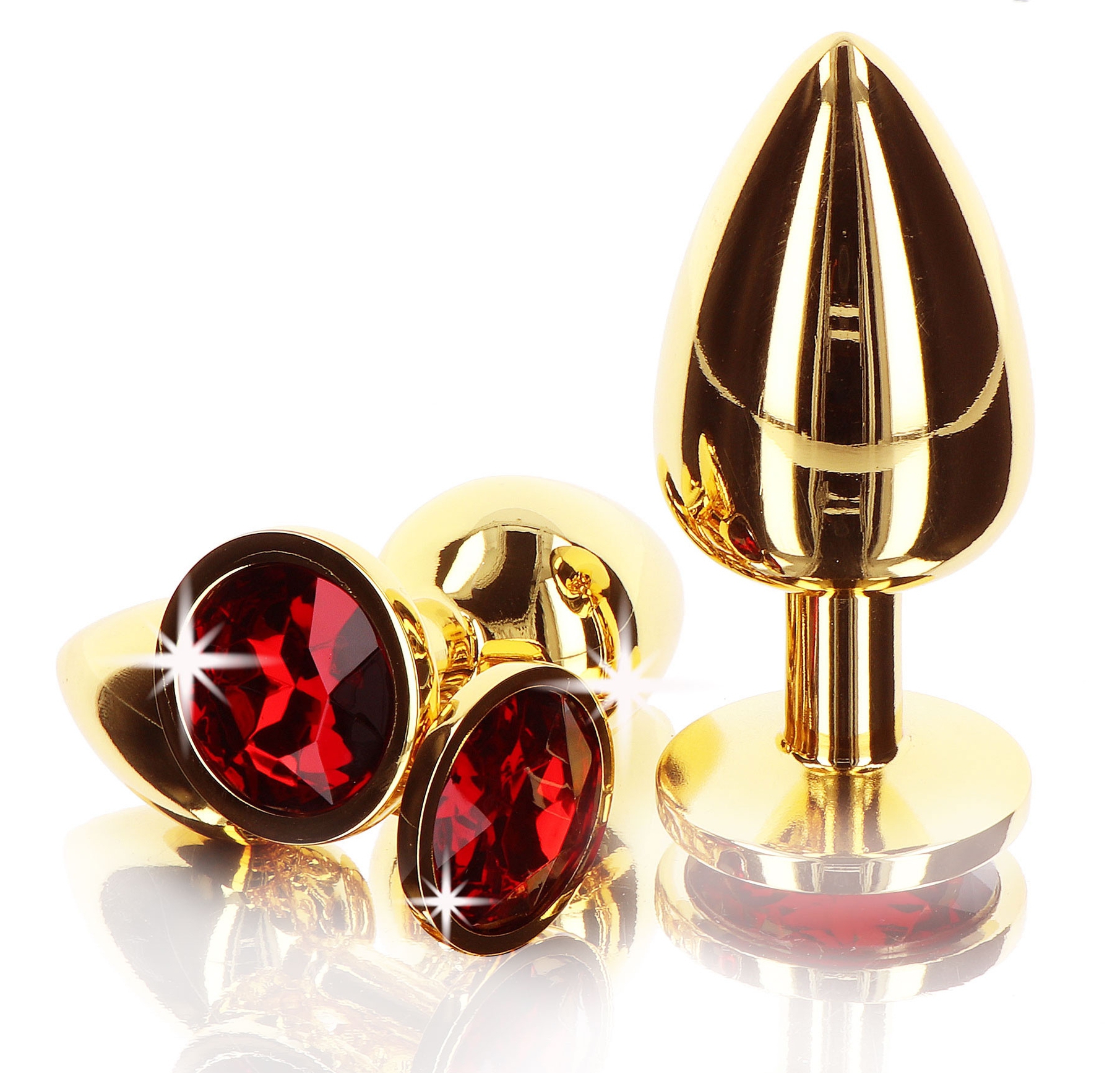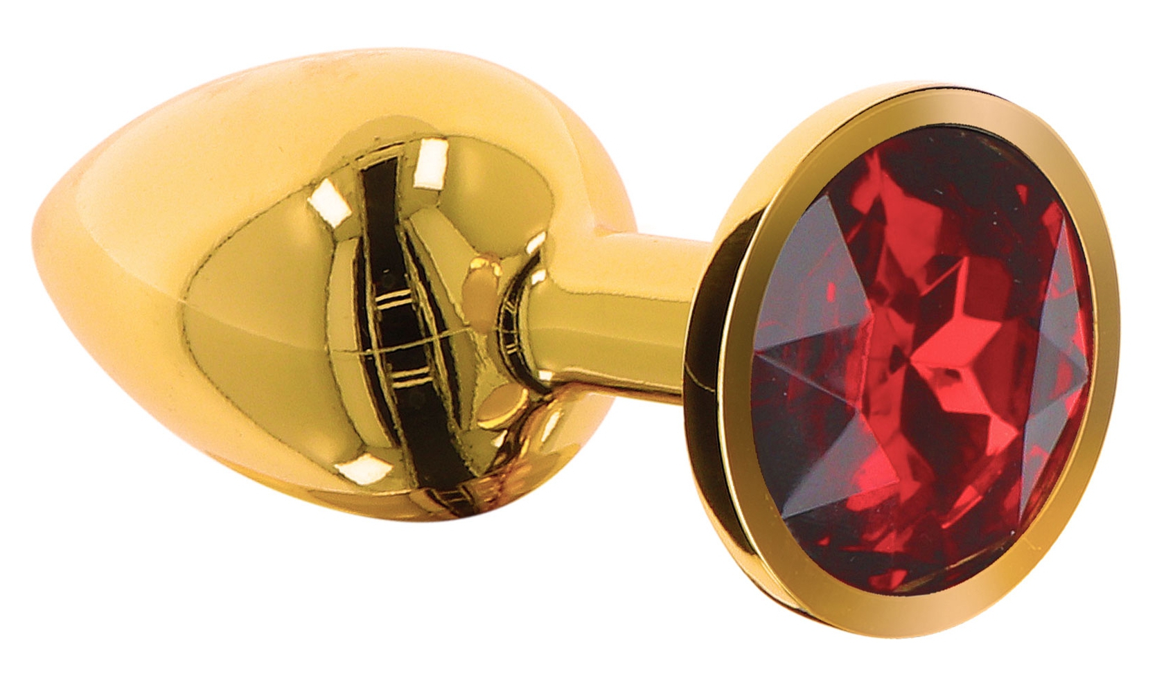 Ce plug bijou Jewel doré est proposé par la marque Taboom. Il est conçu avec une jolie forme de 6cm de longueur insérable et de 2.7cm de largeur.Avec une surface lisse et brillante.Le bijou est rouge. En métal