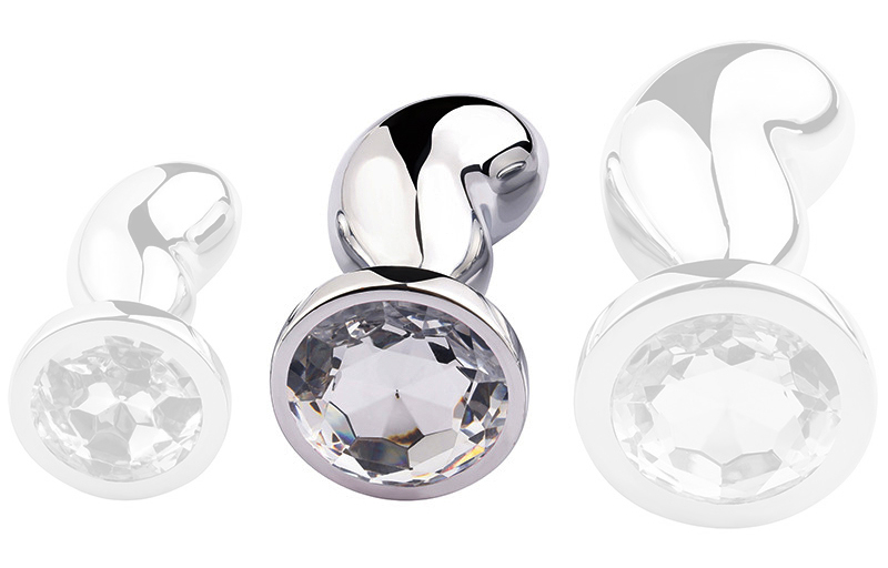 Plug bijou, d’une forme courbée, avec fausse pierre transparente.Longueur insérable de 7 cmet largeur de 1.3 à 3 cm.En acier inoxydable.