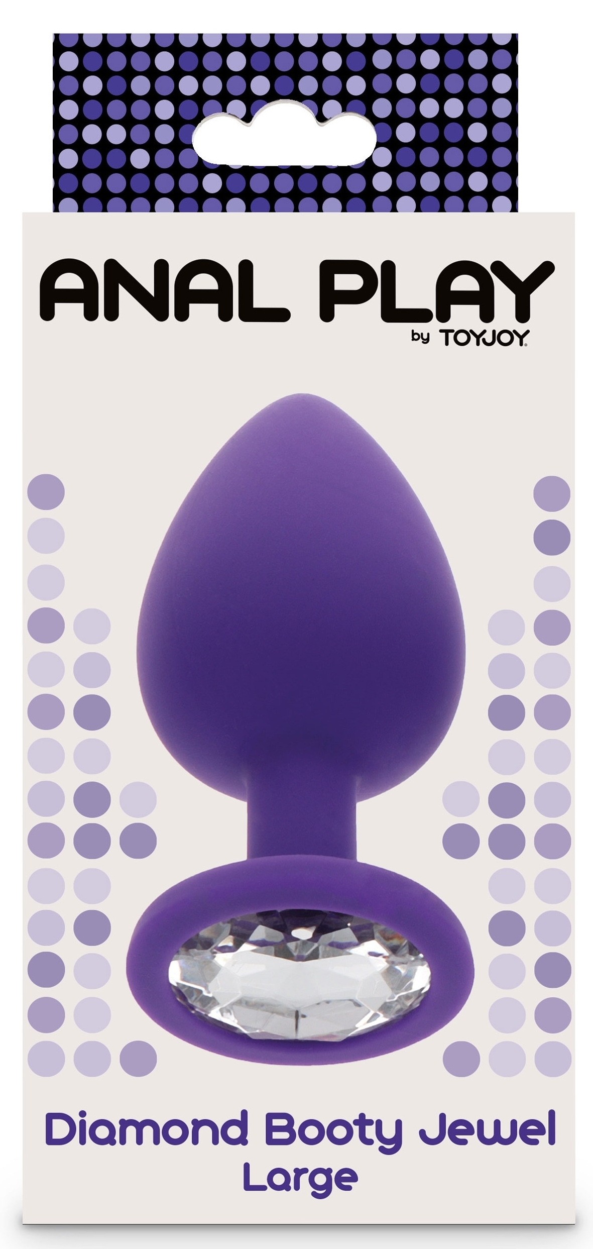 Le plug bijou Diamond Booty L est un sextoy violet avec une longueur insérable de 9 cm et une largeur maximale de 4 cm. Avec un bijou rond brillant.La surface est lisse. En silicone