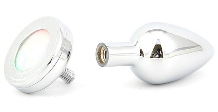 Ce plug bijou est un sextoy en métal composé d’un bijou lumineux par LED colorée.Il apporte de l’originalité et du fun ! Il est réalisé avec une longueur insérable de 7.5cm et une largeur de 3.3cm. Astuce : Bien retirer la languette plastique avant usage