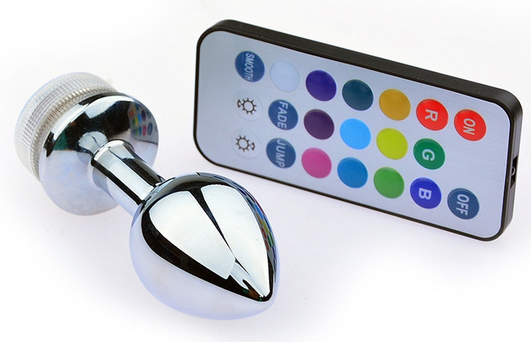 Le plug bijou lumineux Light Led M est un sextoy composé d’une longueur insérable de 7cm et d’une largeur maximale de 3.4cm Les 13 couleurs différentes permettent d’apporter du fun.Elles sont modifiables avec la télécommande. Télécommande avec pile CR2025. Fabriqué en métal