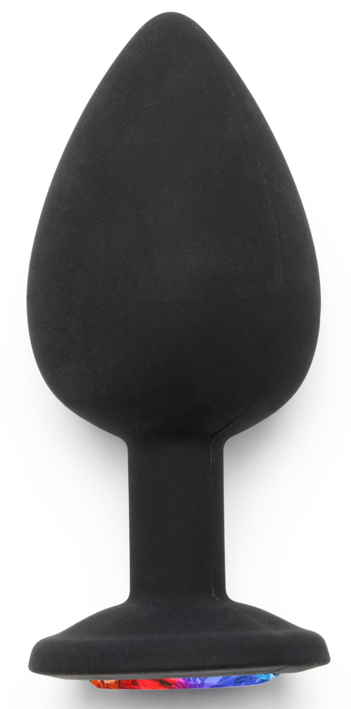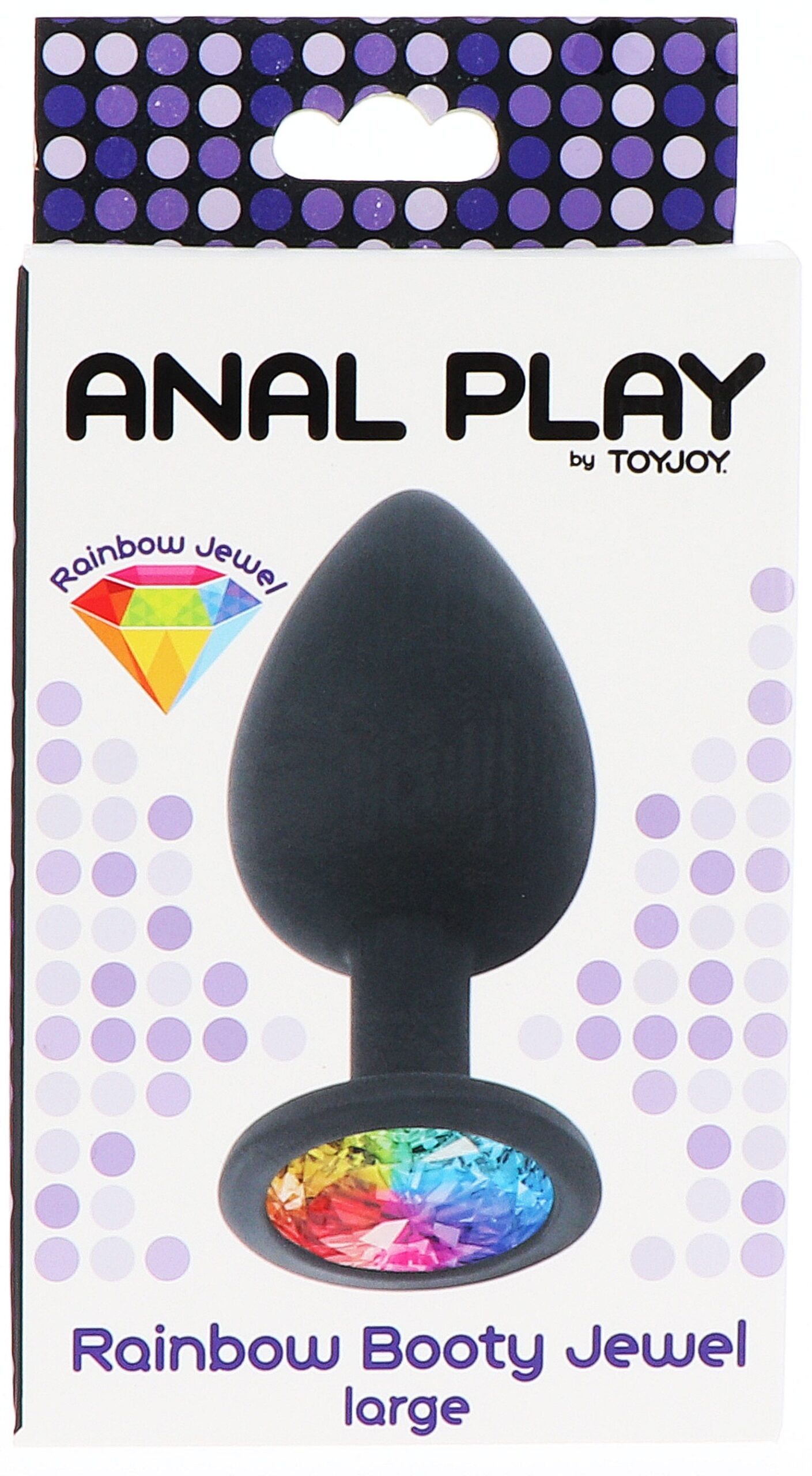 Le plug bijou Rainbow est ici dans sa version Large. Il est compose de : le plug de 9cm de longueur insérable et de 4cm de largeur le bijou rond et brillant avec des reflets Rainbow. Il est fabriqué en Silicone