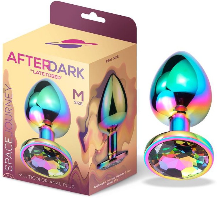 Le plug bijou Space Journey M est composé d’une longueur insérable de 7cm et d’une largeur maximale de 3.3cm.Avec une belle couleur irisée.La surface est lisse. En aluminium