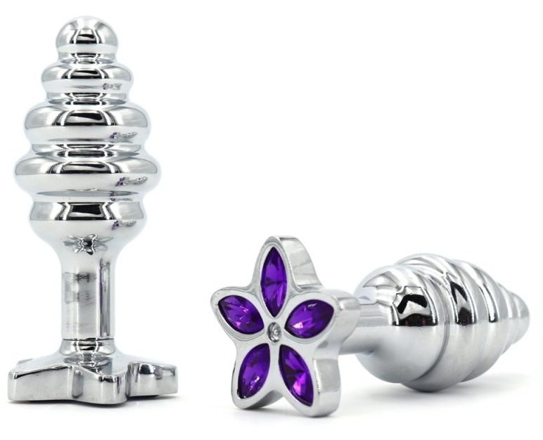 Le plug Bijou Star est un sextoy conçu avec une forme élégante composée d’une longueur insérable de 6.5cm et d’une largeur de 2.8cm.La surface possède plusieurs épaisseurs en forme de vagues. L’extrémité a une forme de fleur étoilée de couleur violette. En métal
