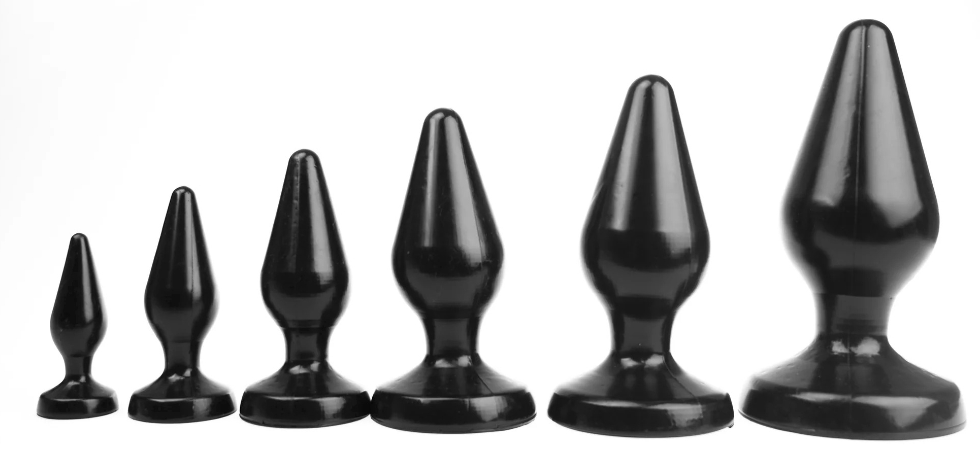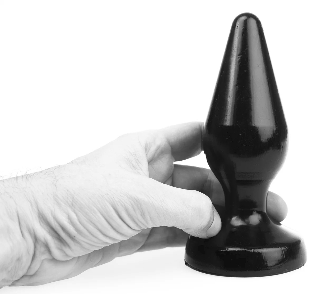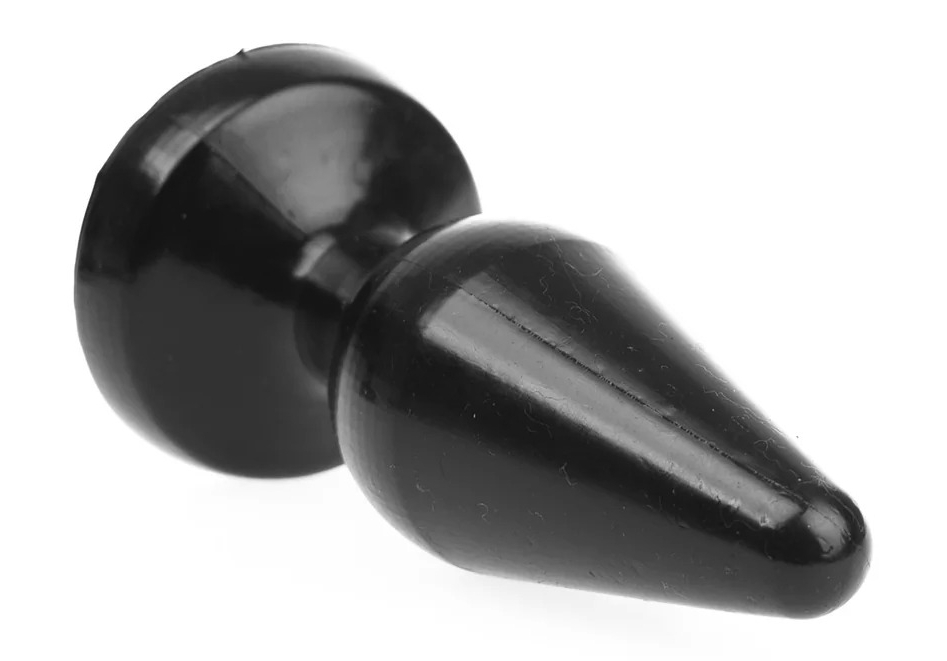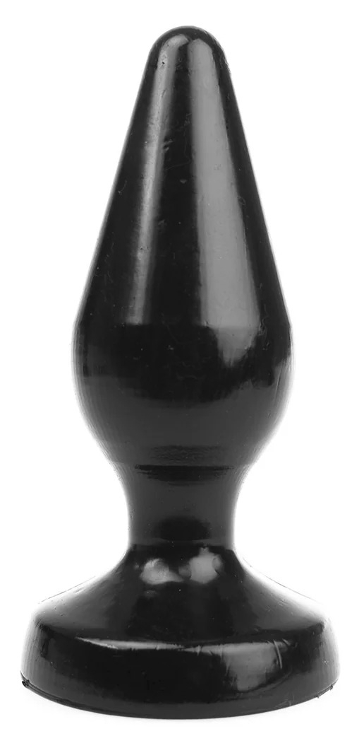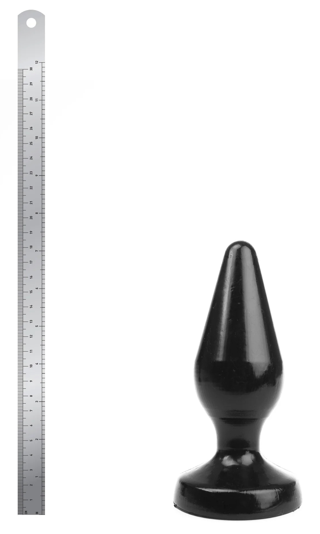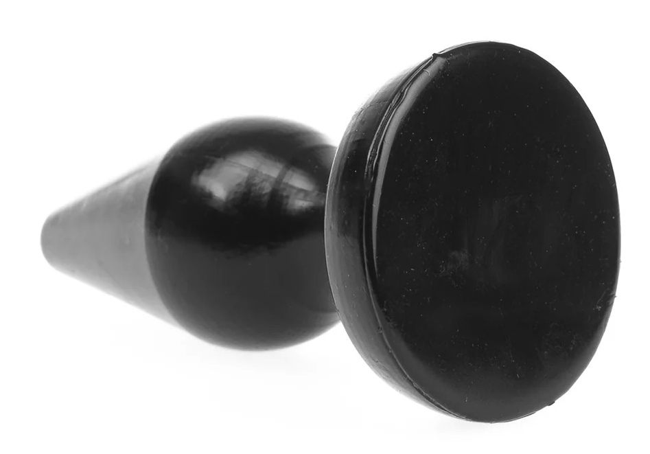 Plug noir de 15 cm de longueur insérable et de 6.8 cm de largeur maximale.Avec une surface lisse et une base plate. En caoutchouc souple PVC
