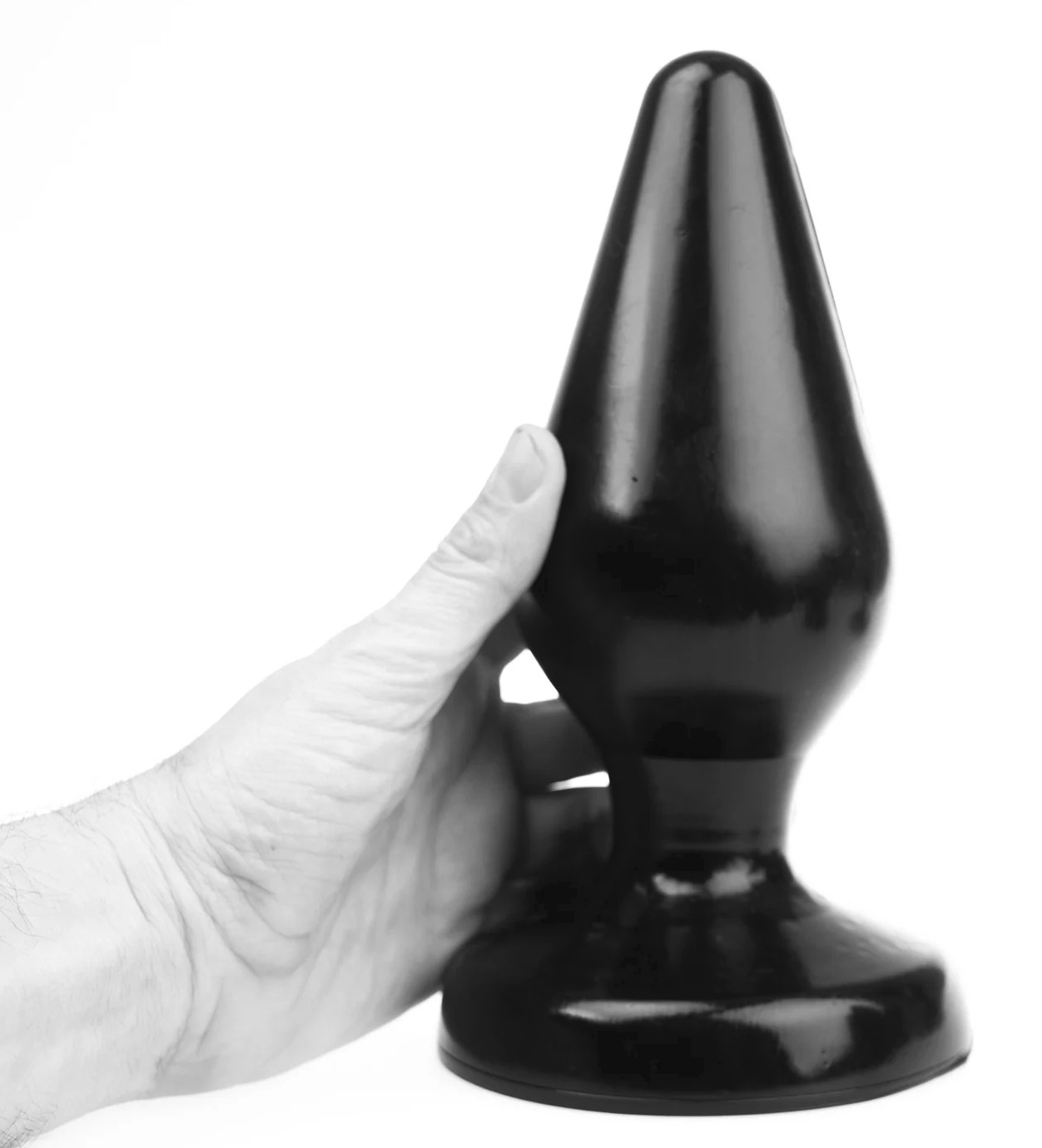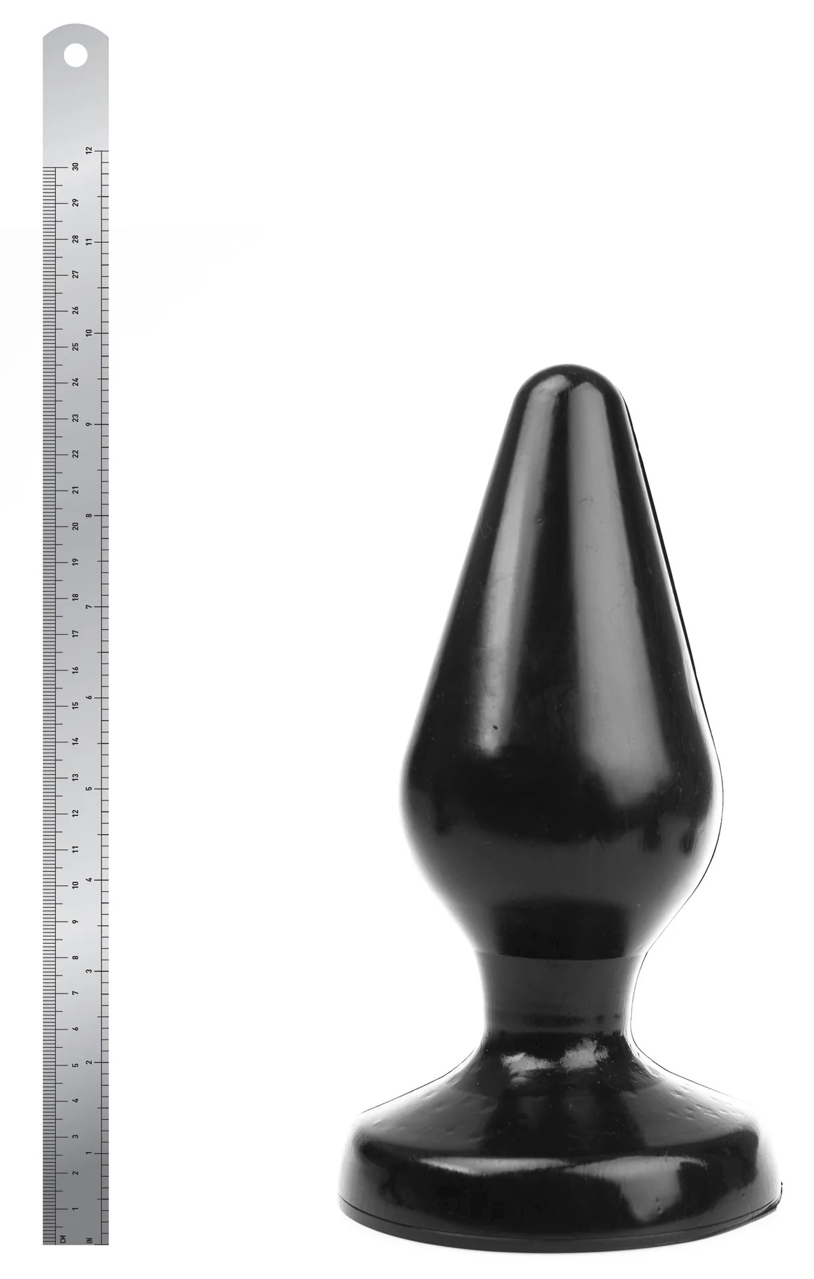 Plug noir avec des dimensions importantes et une surface lisse.Longueur insérable de 20 cm. Largeur de 9 cm. Avec la base plate. En caoutchouc souple PVC