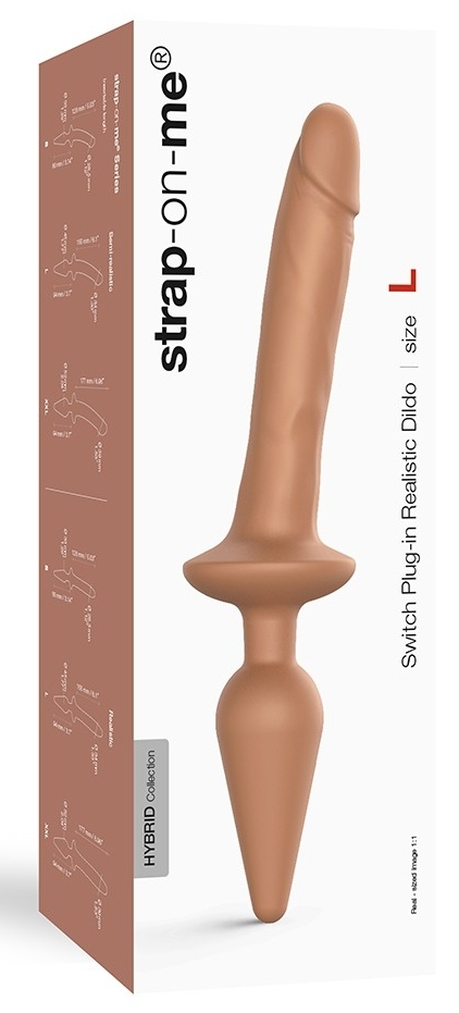 Le plug dildo Switch Realistic L de la gamme Strap-On-Me est conçu avec une forme qui permet des jeux intenses à deux.Il se compose d’un gode de 16 x 3.4cm avec une forme réaliste et d’un plug de 11.5 x 4.5cm. La structure est flexible. En silicone