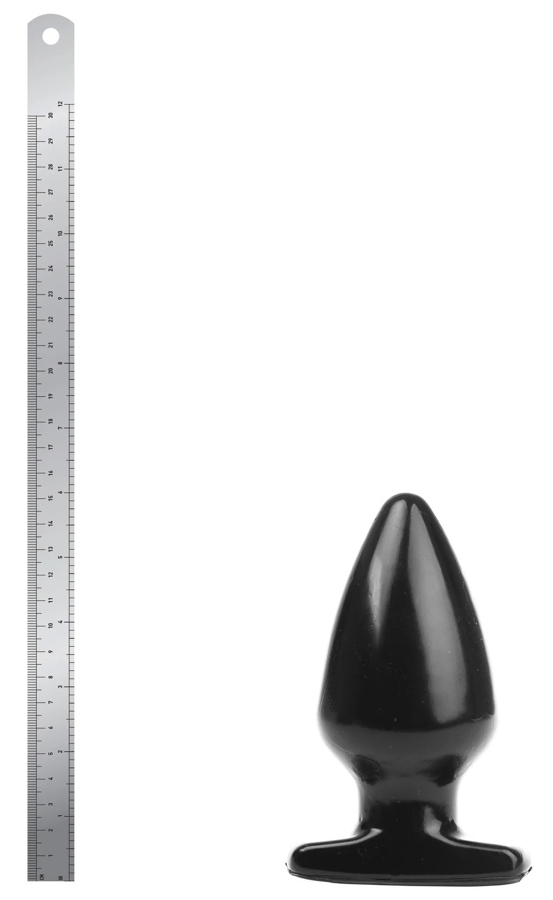 Plug noir de 14 cm de longueur insérable et de 7.5 cm de largeur.Avec une surface lisse. Sa base est plate. En matière caoutchouc souple PVC