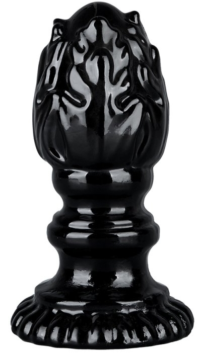 Plug avec une forme de flamme et une surface texturée.Longueur insérable de 13 cm. Largeur maximale de 6 cm.Avec une base ventouse. En TPE
