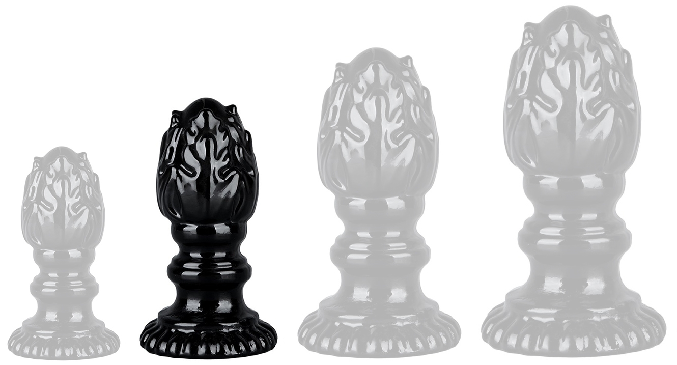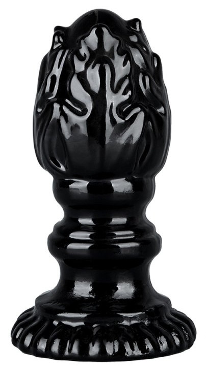 Plug en forme de flamme avec une surface texturée.Longueur insérable de 11 cm et largeur maximale de 5 cm. Avec une base ventouse. En TPE