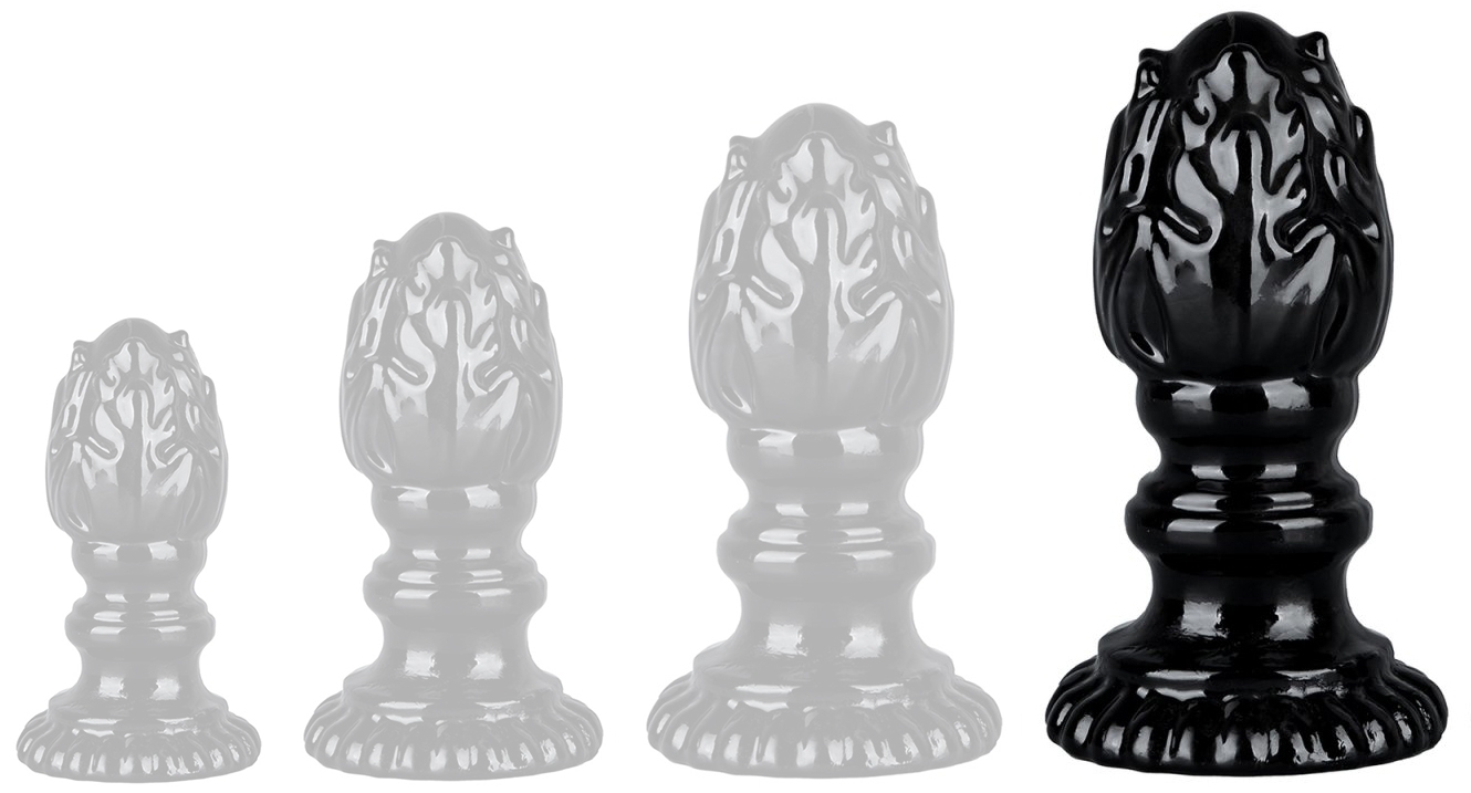 Plug en forme de flamme et une surface texturée.Longueur insérable de 15 cm. Largeur maximale de 7 cm. Avec une base ventouse. En TPE.