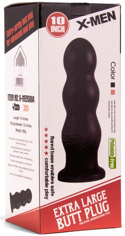 Ce plug Guv de la marque X-Men est un sextoy conçu avec une forme droite et 3 formes arrondies successives.Avec une longueur insérable de 22cm. Les largeurs sont de 6.5cm, 7.2cm et 7.7cm. Avec une surface lisse et une ventouse. En PVC