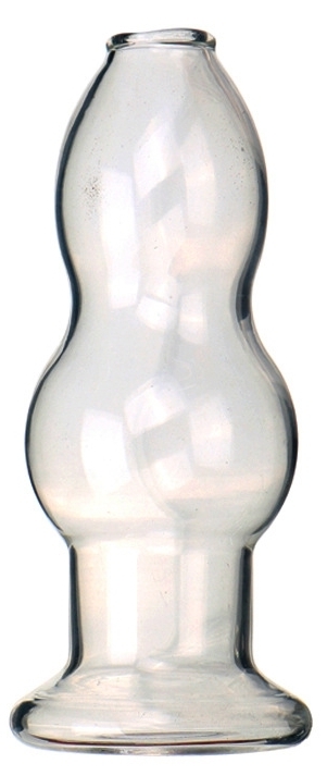 Plug avec une forme permettant une insertion plaisante. Largeurs de 3.5 et 4.5 cm.Longueur insérable de 10 cm.Avec un creux intérieur et des ouvertures de 12 et 20 mm.En verre.