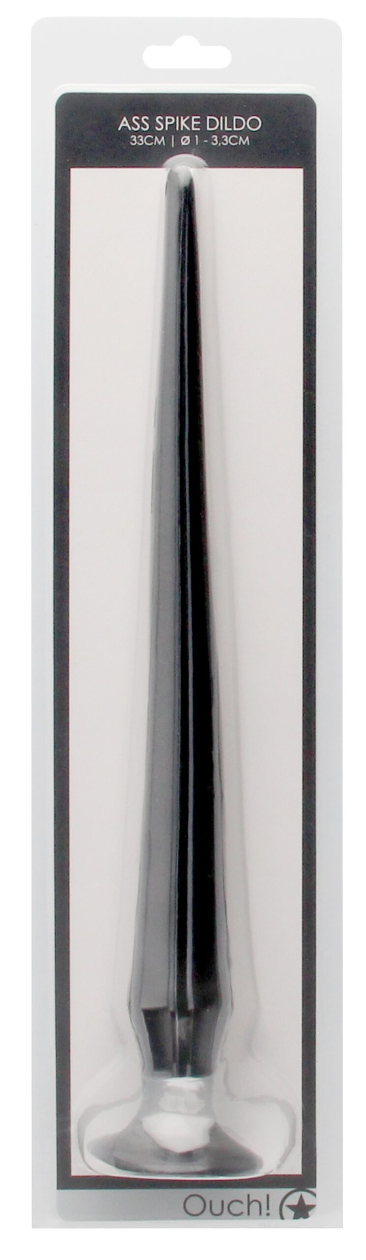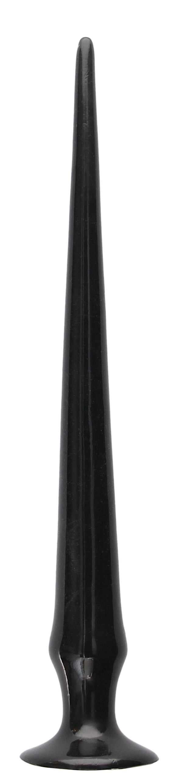 Plug noir avec une structure souple.Longueur insérable de 33 cm. Largeur progressive atteignant 3.3 cm. Surface lisse.Base ventouse. En PVC