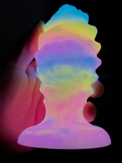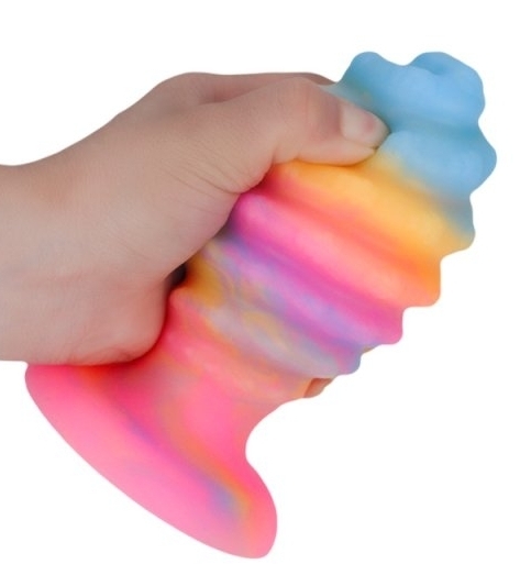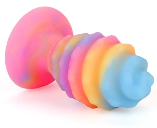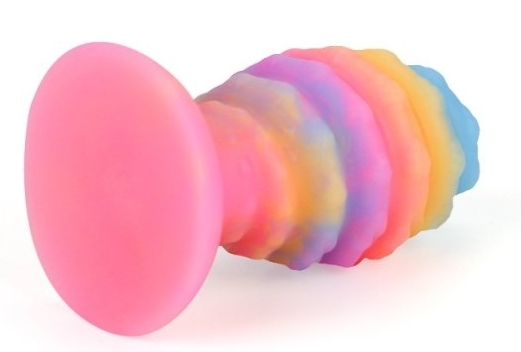 Plug en forme d’oeuf et à la surface en relief. Longueur insérable de 10.5 cm et largeur de 3 à 5.5 cm. En silicone, avec une base ventouse.