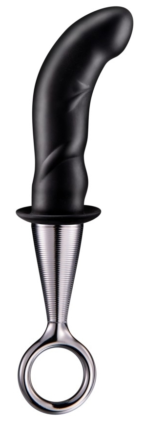 Plug noir avec une forme courbée.Manche en plastique pour un jeu plus facile. Longueur insérable de 10 cm. Largeur de 2.7 cm. En silicone