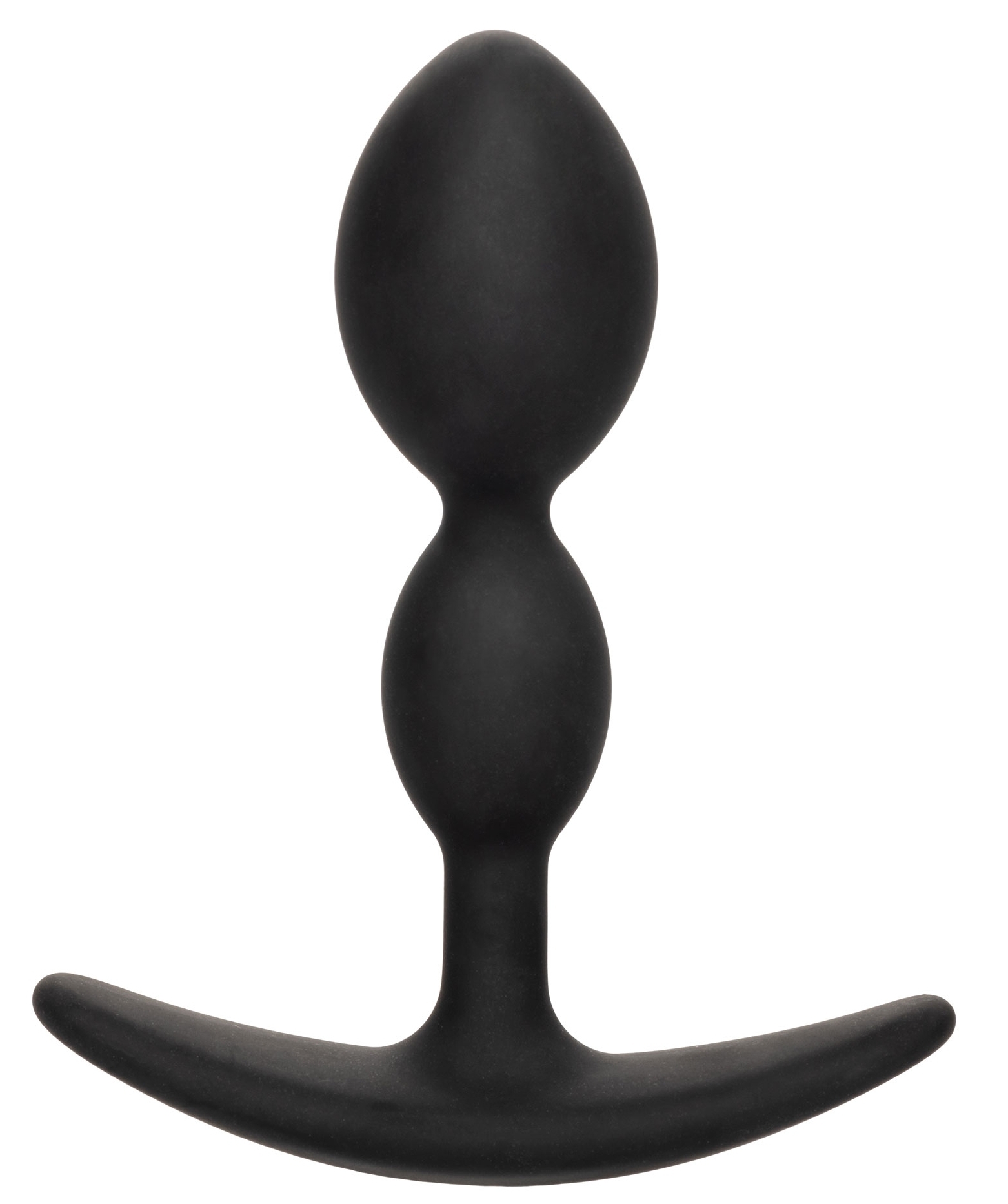 Plug avec une longueur insérable de 7 cm. Les largeurs sont de 2 cm et de 1.5 cm. La base est incurvée.La structure est flexible. En silicone