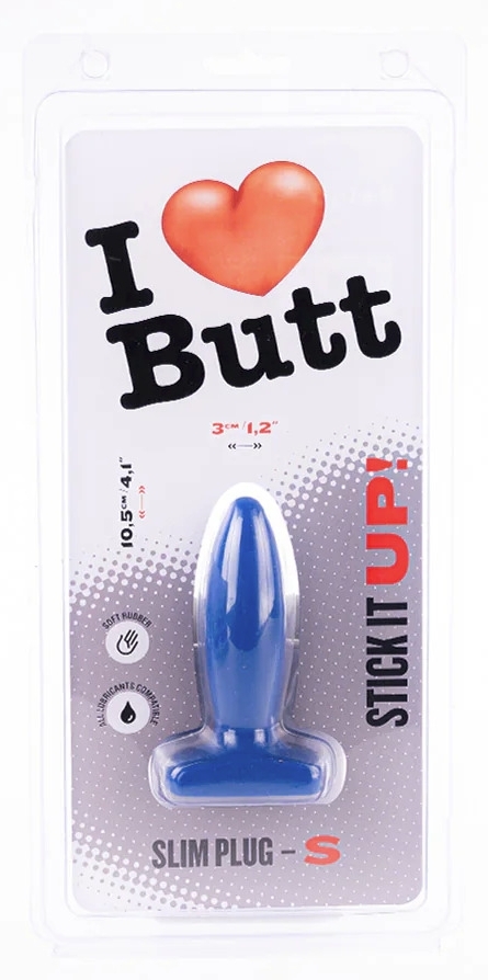 Plug Slim S I Love Butt 8.5 x 3 cm Bleu