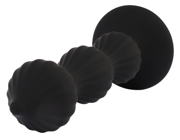 Plug avec une forme originale comportant trois sortes de boules.Longueur insérable de 13 cm.Largeur de 3.4 cm, 3.2 cm et 3.5 cm.Avec une surface comportant des stries verticales. Avec une ventouse. En silicone