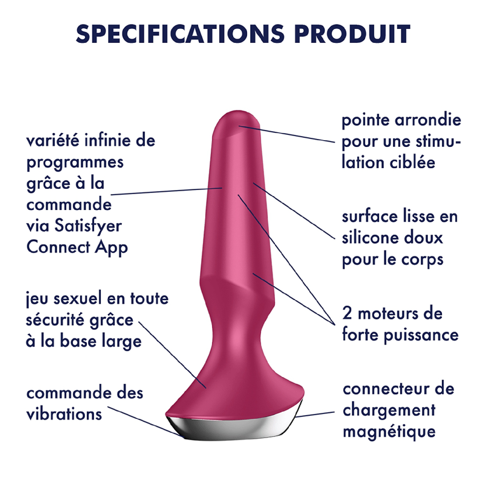 Ce plug vibrant est un sextoy de la marque Satisfyer conçu avec une forme élégante et une surface lisse. Il permet une insertion délicate et un plaisir agréable.La longueur insérable est de 10cm. La largeur est de 3cm. Avec 2 moteurs et 12 modes de vibrations. L’application Satisfyer permet des possibilités infinies de vibrations