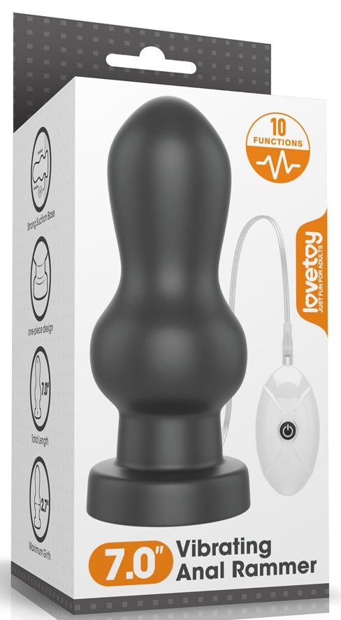Le plug vibrant King Rammer de la marque LoveToy est un sextoy conçu avec une forme à deux niveaux. Il permet une insertion excitante.La longueur insérable est de 15cm. Les largeurs sont de 5.3 te 7cm.Avec 7 rythmes de vibrations et 3 vitesses. Avec une base ventouse.En PVC